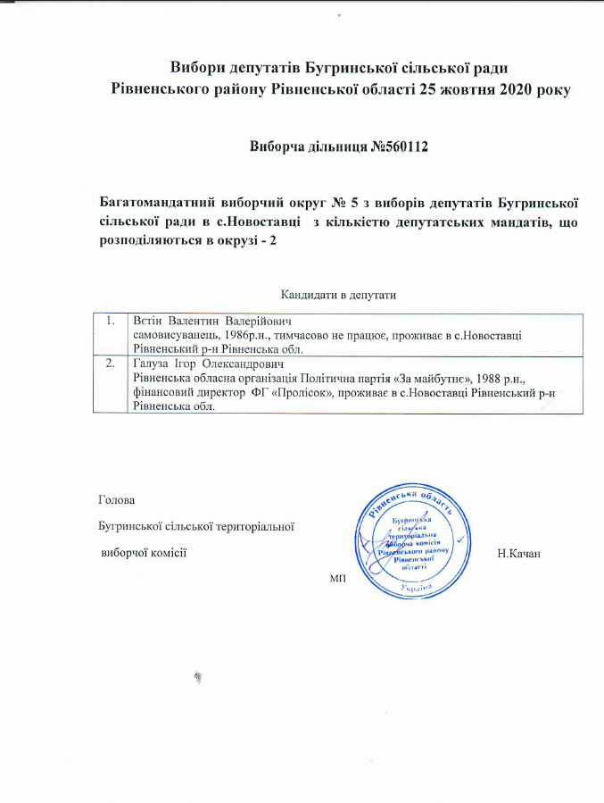 Кандидати у депутати Бугринської сільської ради