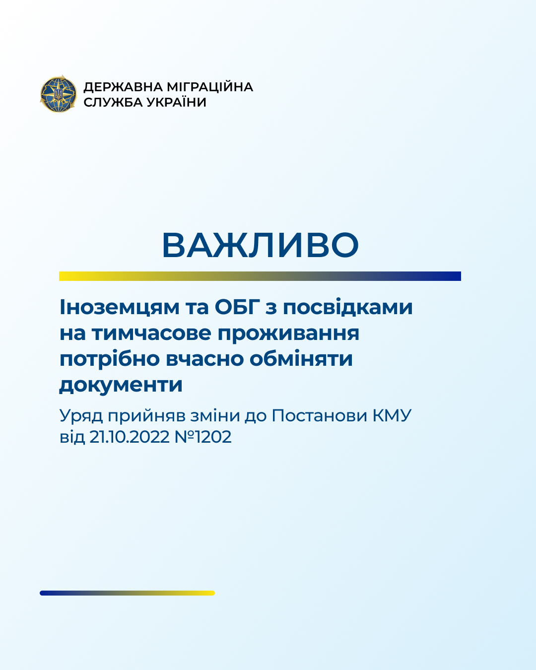 Згідно цих змін іноземці та особи без громадянства, які документовані посвідками на тимчасове проживання, строк обміну яких настав після 24 лютого 2022 року, крім громадян Російської Федерації, зобов’язані в установленому законодавством порядку подати документи для обміну таких посвідок на тимчасове чи постійне проживання протягом 3 місяців з дня набрання чинності постановою.